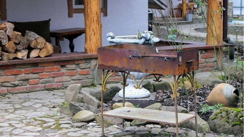 Рядом с домом стоит беседка с гриль-зоной для отдыха на свежем воздухе. Телевизор оснащен стереосистемой. Большая обеденная зона оснащена столами и лавками из монолитного дерева.
