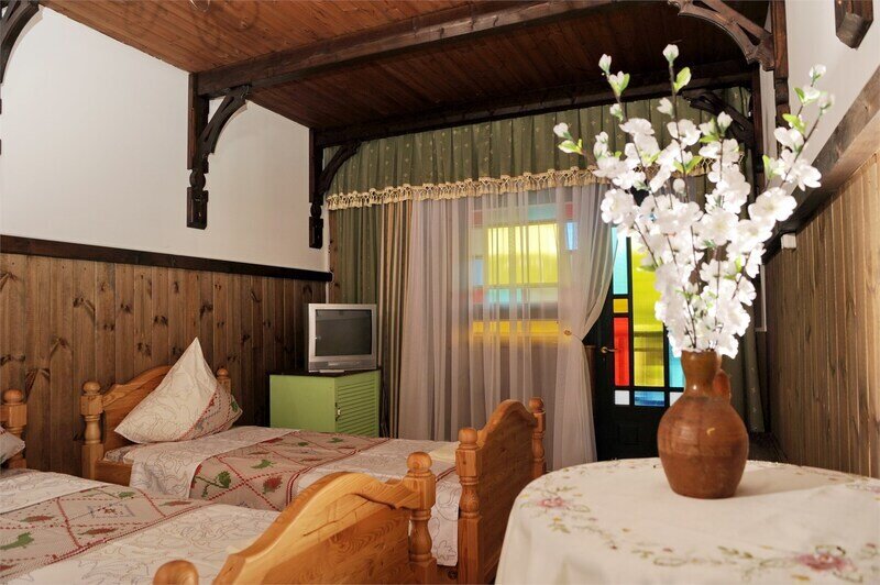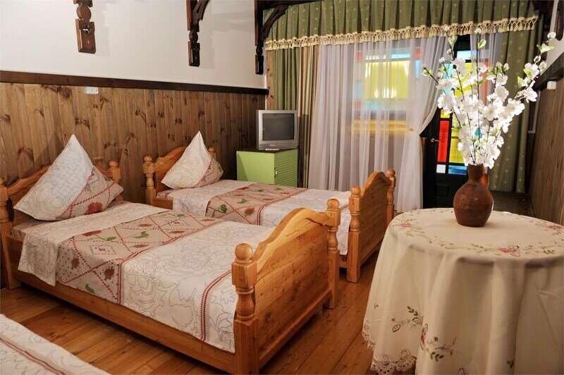 В номере две односпальные кровати, тумбочка, вешалка для одежды, чайный столик, стулья, телевизор, мини-холодильник, сплит-система.