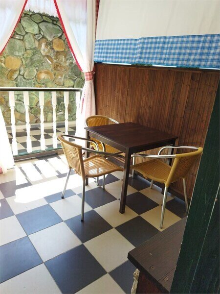 В номере двуспальная кровать и односпальная кровать, тумбочка, вешалка для одежды, чайный столик, стулья, телевизор, мини-холодильник, сплит-система.