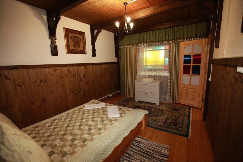 Кровать двуспальная, кровать 2-ярусная, тумбочки прикроватные, мини-холодильник, сплит-система, телевизор, санузел (ванна+туалет)