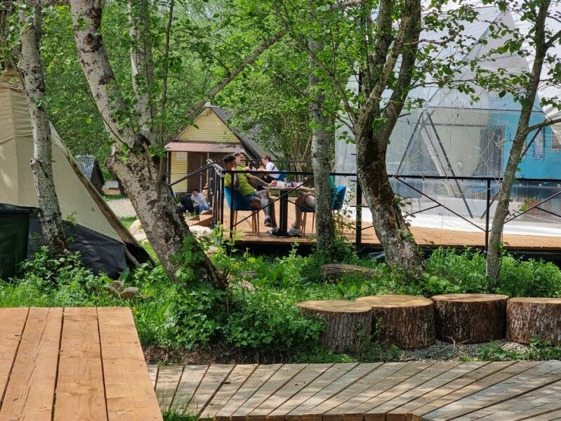 В шаговой доступности от глэмпов расположен ресторан с европейской кухней и прекрасным сервисом.