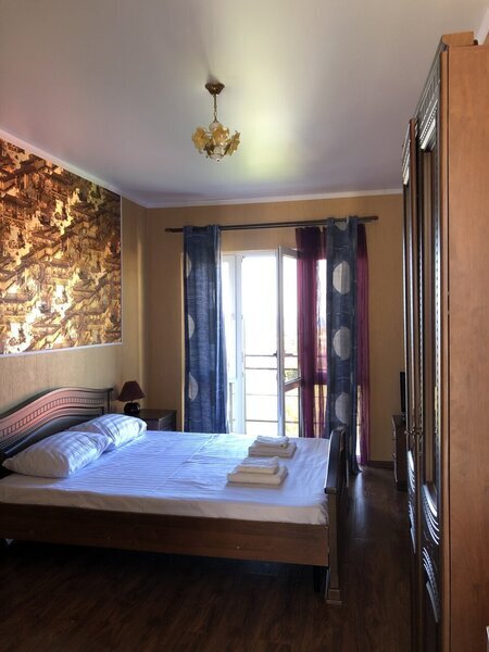 Двуспальная кровать + раскладной диван как основное место, с/у, душ, ТВ.