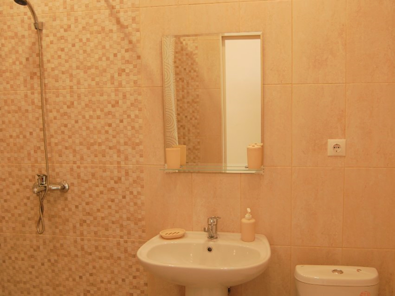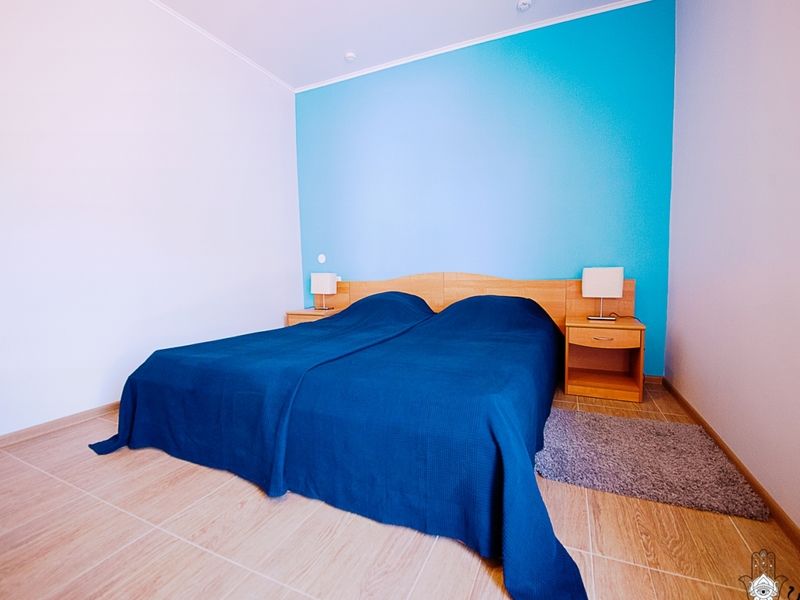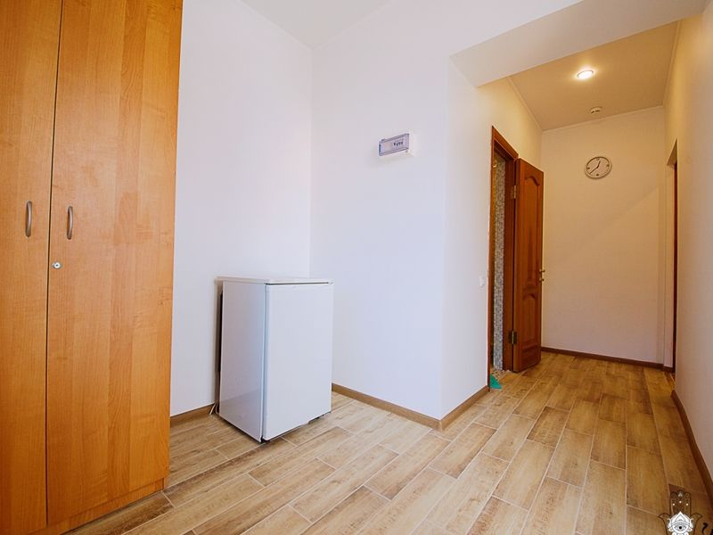 Площадь номера: прихожая – 15,2 м2, с/у – 1,6м2, душевая – 1,5м2, комнаты – 10,6 м2 и 21,3м2. Вход в су с большой комнаты, в душевую с прихожей. В большой комнате есть балкон. В большой комнате 2-х спальная кровать, в маленькой комнате односпальная кровать.