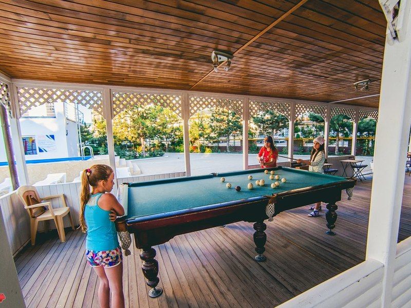 Путешествие с семьейвсё супер!это афигительный отель на территории есть и бассейн и бильярд, настольный теннис, спорт площадка и песочница для детей и много чего ещё классного! один из лучших отелей где я была! Номер просто рай всё есть ( мультиварка, микроволновка кухня а это огромный плюс) жили в двухкомнатном номере (и пока проживаем) всем советую!!!