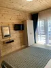 Двуспальная кровать, диван-кровать шириной 1.3 м. и, конечно же, санузел.