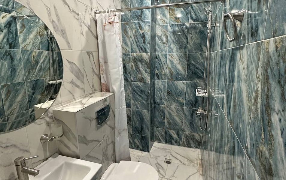 кондиционер, светильник, обогреватель, душевая кабина, санузел, банные принадлежности, банные полотенца, гигиенические средства, косметические средства, туалетные средства, туалет, телевизор с плоским экраном, мини-холодильник, гостиничная парфюмерия, мыло, без питомцевВ гостиничном номере