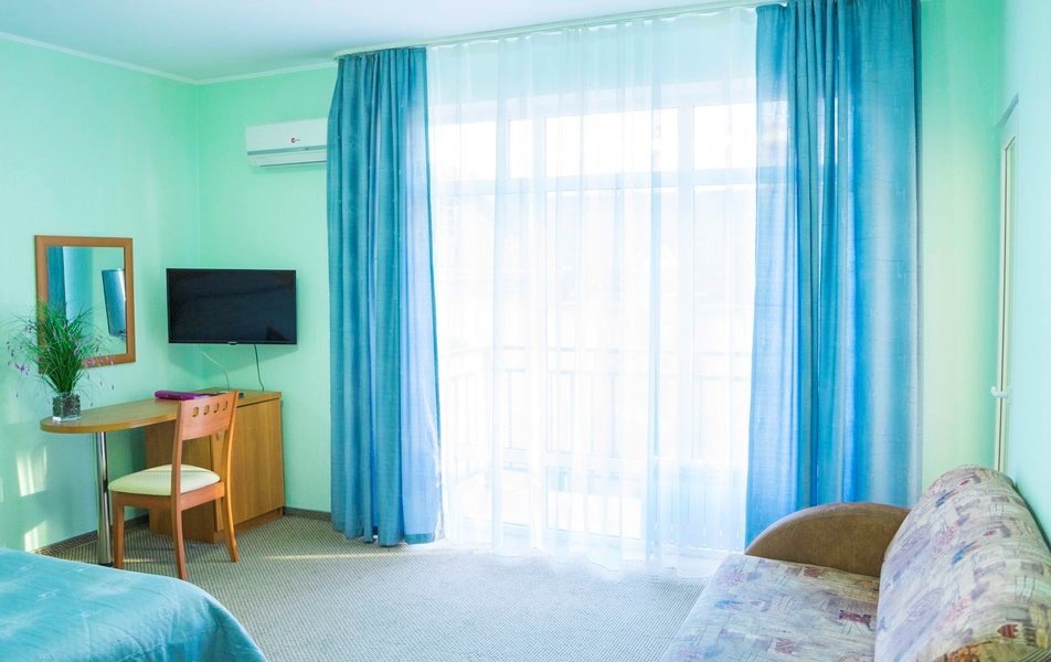 Двухместный стандарт с балконом . Данная категория номера расположена на 2 или 3 этажах. Все номера с балконами. В качестве дополнительного места предоставляется кресло-кровать. Для комфортного проживания в ванной комнате имеются косметические принадлежности ( гель для душа, шампунь, мыло).Услуги и удобства