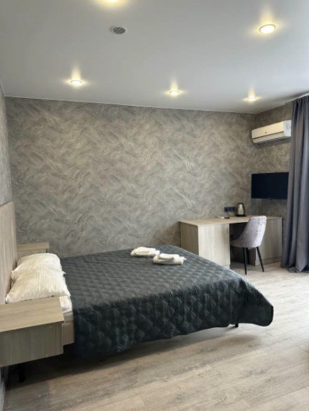 Стандартный номер с новым современным дизайном. Номер оснащен кондиционером, холодильником, плазменным ТВ. В каждом номере есть чайник, а также минимальный набор посуды (кружки, тарелки, приборы). В ванной комнате для вашего комфорта предоставляется набор косметических принадлежностей (гель для душа, шампунь, мыло).Услуги и удобства