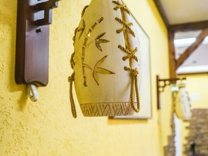 Номера оборудованы деревянной мебелью и удобным спальным местом, холодильником, телевизором и кондиционером. Собственные ванные комнаты укомплектованы душевыми кабинами.