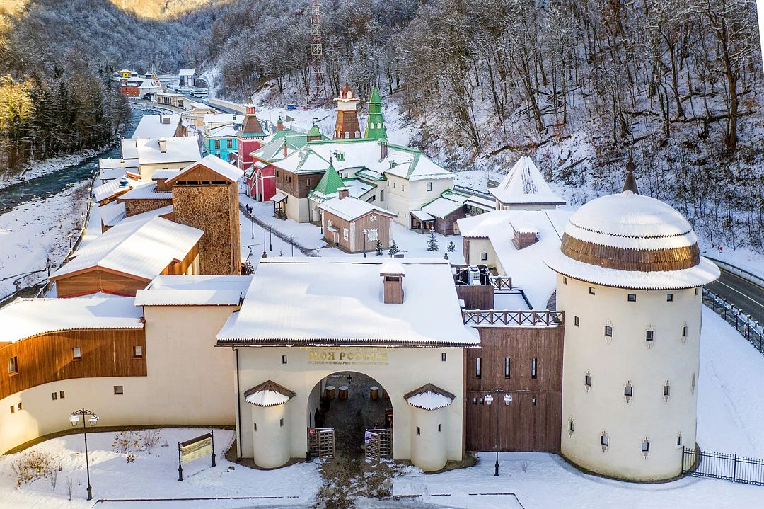 Путешествие с семьейВернёмся сюда!Очень и очень хороший отель! Не любим возвращаться туда, где были. Но это то редкое место, куда бы вернулись. Встретили по-домашнему. Номер просто супер!! Вся мебель из массивного дерева, даже раковина обита им. Тишина полнейшая, т.к. это самый последний отель в поселке. Только шум горной реки) Отель расположен на территории этнопарка с кучей национальных музеев. Прогулка по нему вдоль Мзымты каждый раз создавала определенное насложденческое настроение. Кстати, билет в этот этот парк-музей 500р.взр. и 250р.дет. Мы же гуляли там бесплатно каждый день. Нам всем ещё в отеле дали билеты на подьемник до горной олимп.деревни всего по 100 руб. (вместо примерно 1000 с человека). Вот и считайте выгоду! Завтраки в отеле вкусные. Да и вообще все с душой. Попросила своему малышу табуретку, чтобы доставал до крана при умывании. Так они специально для него съездили купили подставку детскую. Спасибо вам большое за прекрасный отдых!