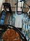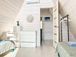 Винтовая лестница ведет на второй этаж с уютной спальней