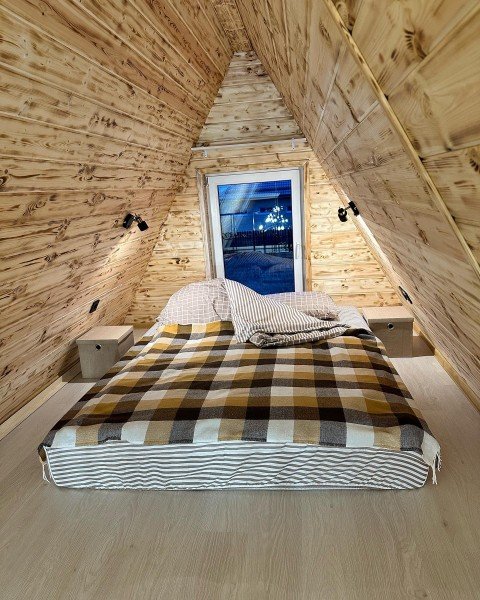 Вас ждут дома в стиле A-frame с панорамными окнами, баня из канадского кедра с мягким паром, беседка с мангальной зоной, а также чистый и тёплый бассейн под открытым небом.