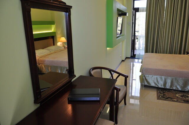 Трехэтажный корпус отеля с балюстрадами разместился на благоустроенной территории всего в 500 метрах от моря. Жилой фонд предлагает отдыхающим 2-х и 4-х местные номера, оснащенные всем необходимым. В каждом номере имеется собственный санузел, установлена система общего кондиционирования, есть электрочайник, фен, телевизор-ЖК.