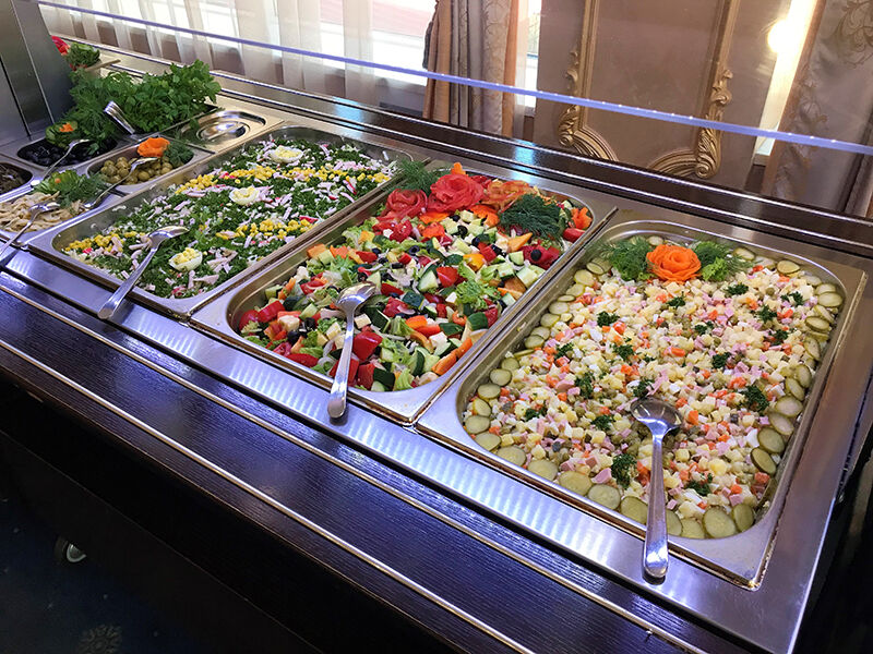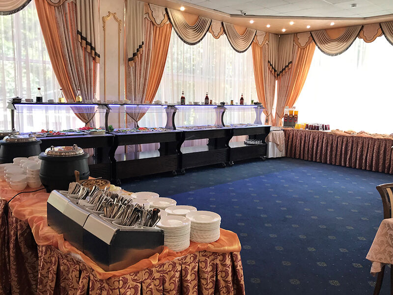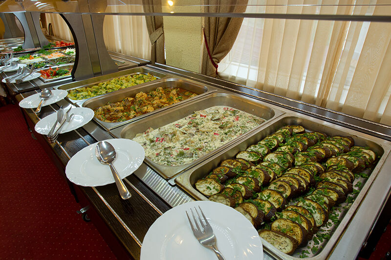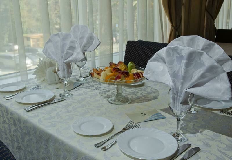 В высокий сезон на выбор отдыхающих предлагается трех- или двухразовый «шведский стол». В пансионате можно воспользоваться лобби-баром и летним кафе.