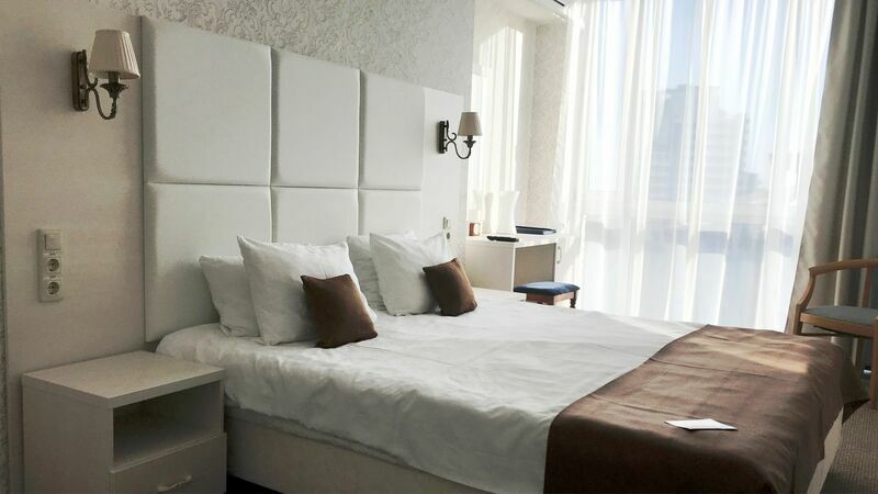В 5-этажном корпусе – четыре категории номеров: можно жить в стандарте, люксе, студии или апартаментах. В номерах есть все современные удобства: санузел и фен, Wi-fi и телевизор, кондиционер и холодильник, телефон и мини-бар.