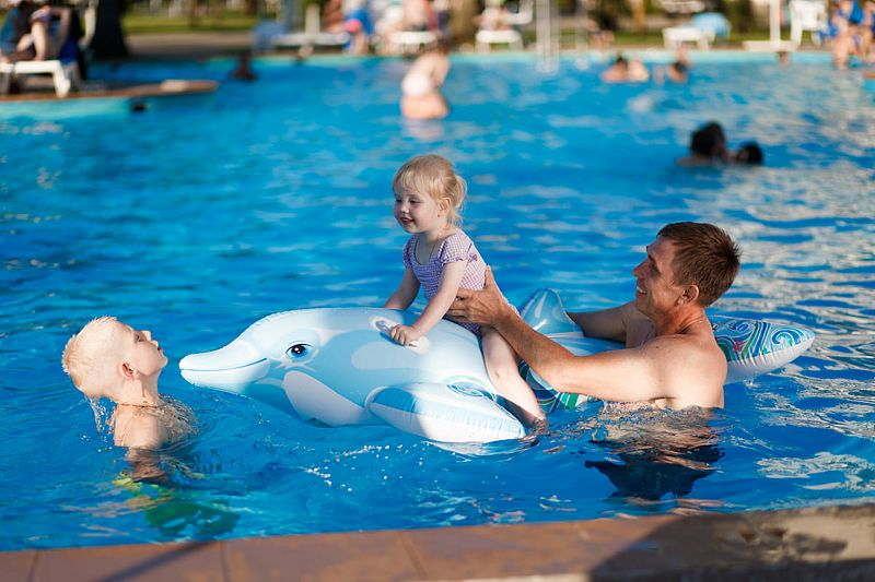 ** бассейны подогреваются в разном количестве в зависимости от сезона.