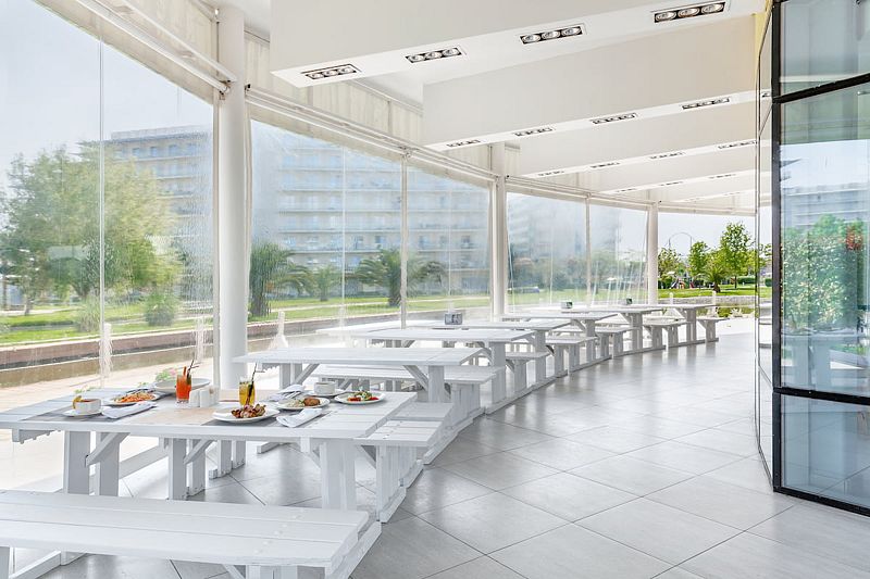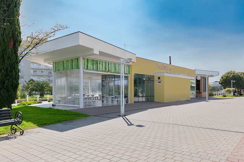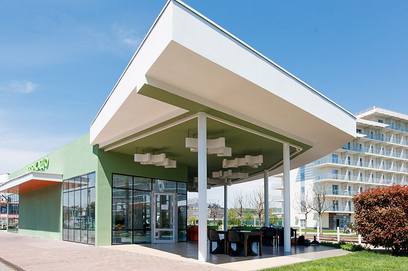 Здесь можно не только отдохнуть, но и восстановить здоровье — на базе медицинского центра доступен широкий спектр лечебно-оздоровительных процедур. Также к услугам гостей 5 просторных неподогреваемых бассейнов под открытым небом, спортивные площадки, фитнес и спа-центр с просторной термальной зоной и полным комплексом процедур для релаксации, магазины, кафе и рестораны на любой вкус, гостевая парковка.