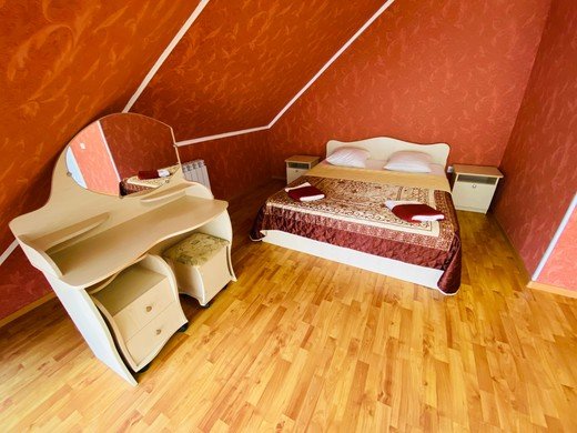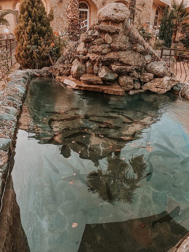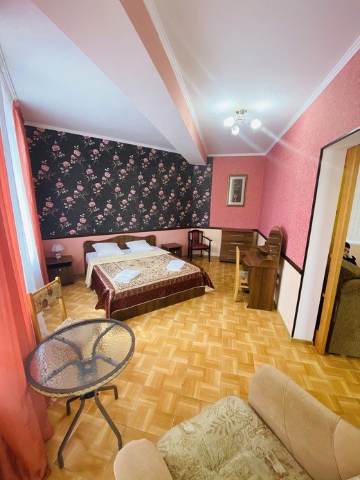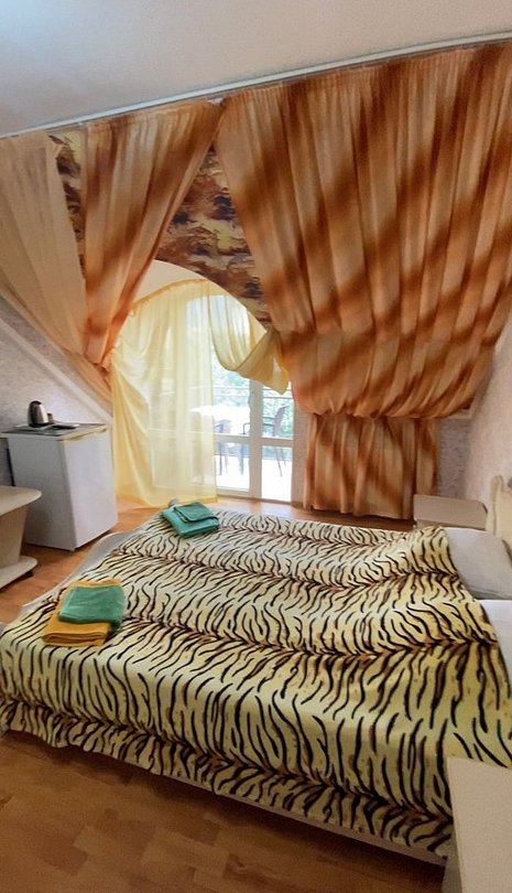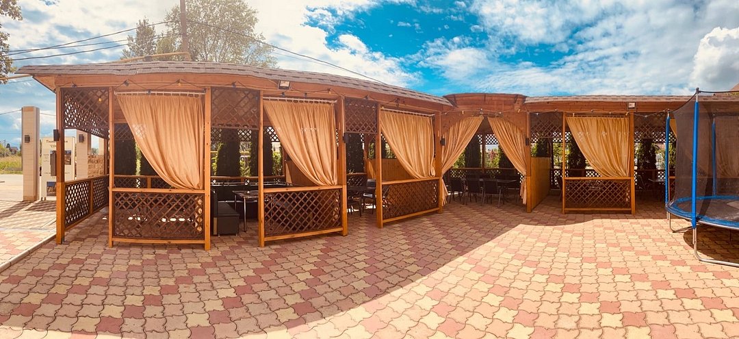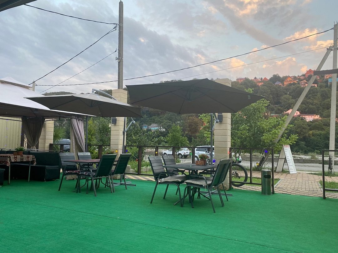 В доме имеется двор с фонтаном, композитным бассейном (с подогревом) с подсветкой, а также цветами и экзотическими растениями. Имеется бильярд, настольный теннис. Перед домом имеется бесплатная автостоянка, интернет Wi-Fi по всей территории. На территории есть пруд с речной форелью, столовая, кафе-бар, для гостей проводятся вечера с живой музыкой.