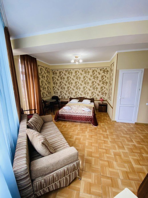 <p "="">От гостевого дома по прямой асфальтированной дороге, мимо сувенирных лавок, в 20 минутах ходьбы до моря расположен пляж «Багратион».