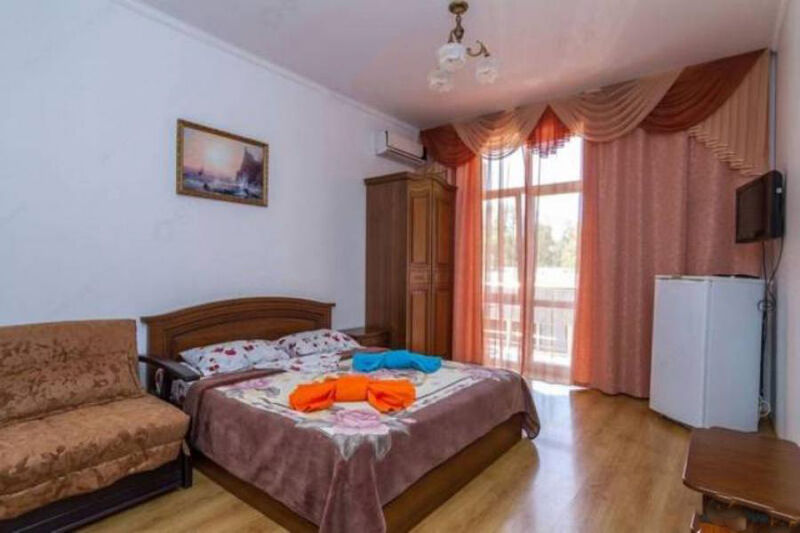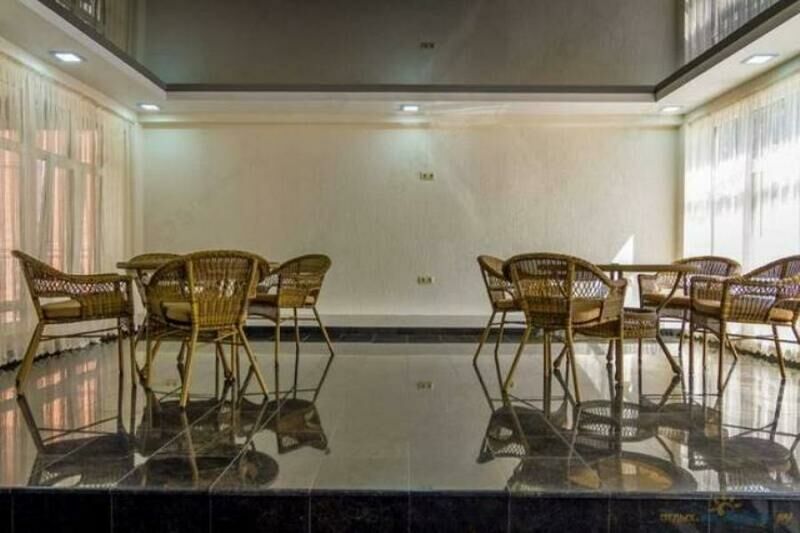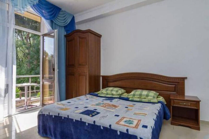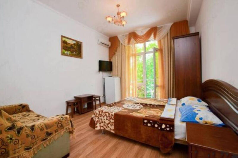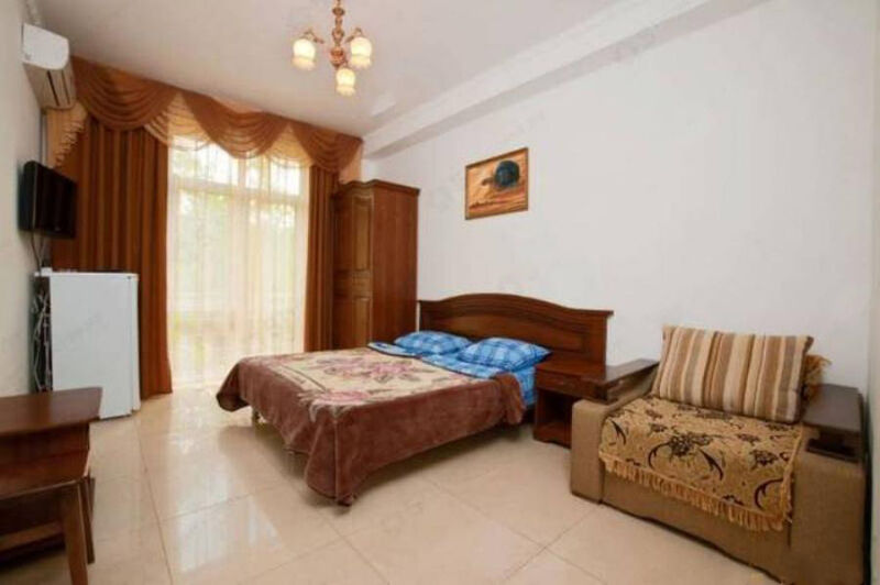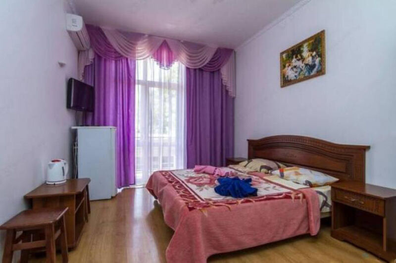 Четырехэтажный корпус гостевого дома с мансардным этажом расположен всего в 180 метрах от морского побережья. В распоряжении гостей стандартные однокомнатные и двухкомнатные номера, в каждом есть собственный санузел с душем, сплит-система, телевизор с плоским экраном, мини-холодильник. В ряде комнат предусмотрены балконы.