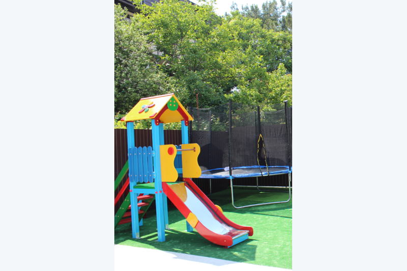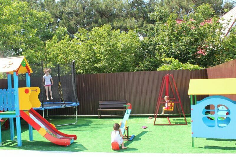 Для удобства гостей на каждом этаже оборудована общая кухня, работает кафе, а во дворике устроена барбекю зона. К услугам отдыхающих —открытый бассейн с подогревом и детским отделением, автостоянка, беспроводной интернет. Для малышей организована игровая площадка с качелями.