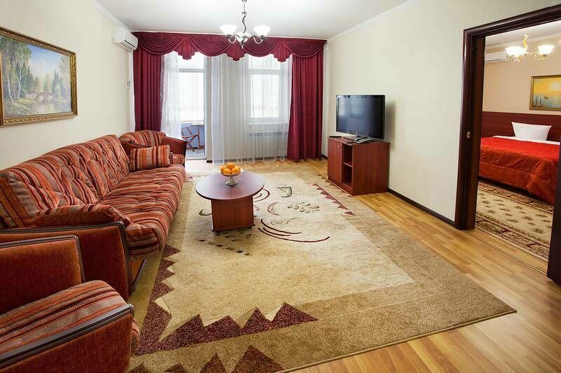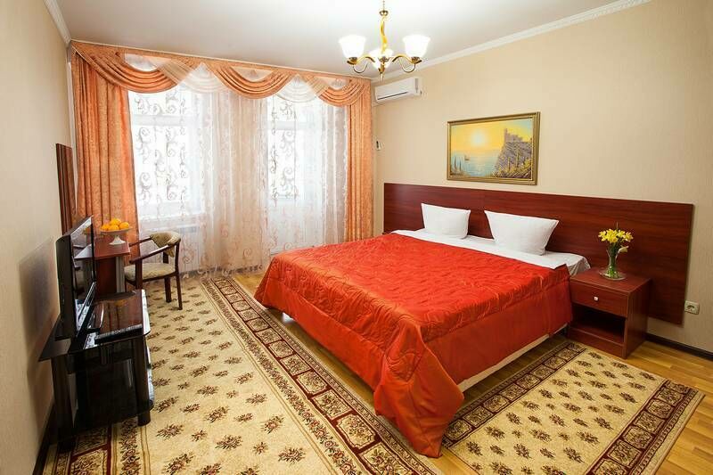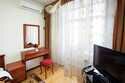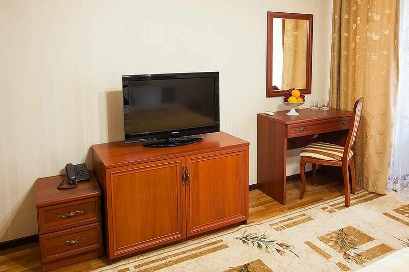Пансионат, включающий в себя несколько четырехэтажных и пятиэтажных корпусов, разместился на благоустроенной территории с тенистыми аллеями, аккуратными газонами и благоухающими цветниками. Гостей ожидают более 200 однокомнатных и двухкомнатных номеров, оформленных в классическом стиле. В каждом номере предусмотрен индивидуальный санузел с душем, установлена сплит-система, есть вся необходимая техника: телевизор, фен, мини-холодильник.