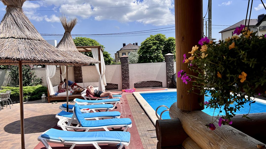 Насладитесь отдыхом у бассейна с подогревом — уютные шезлонги и зонты создают атмосферу расслабления и безмятежности, позволяя забыть о повседневных заботах и погрузиться в мир наслаждения и комфорта.
