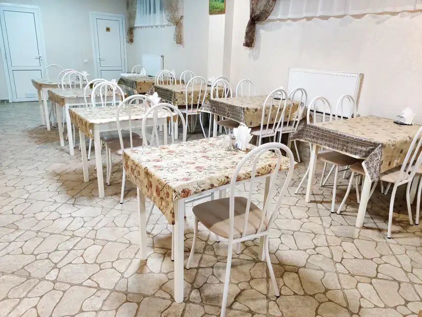 Атмосфера располагает к семейным или дружеским ужинам в удобной зоне со столами и стульями, где каждый найдет место для комфортного отдыха.