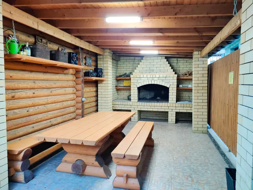 Гости могут насладиться искусством приготовления сочных блюд на мангале, окруженные чарующим ароматом. После гости могут спокойно насладиться плодами своего труда, расположившись за столом с лавками.