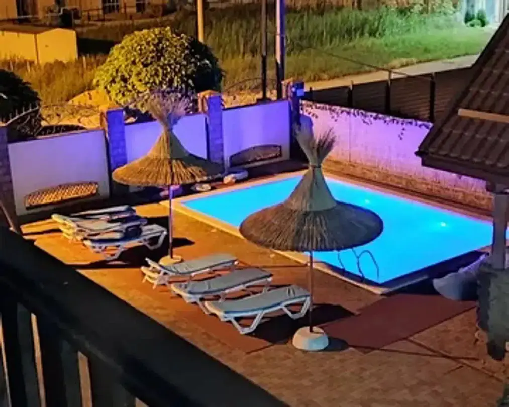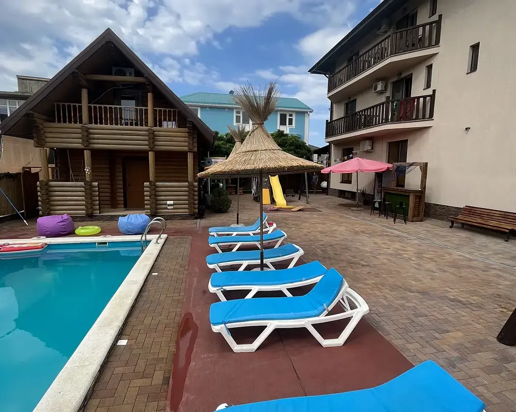 Тип бассейна: открытый бассейнВода в бассейне: подогреваемый бассейнРядом с бассейном: шезлонги, зонтики, полотенцаТемпература в бассейне: 30 °CПериод работы: летний сезонНасладитесь отдыхом у бассейна с подогревом — уютные шезлонги и зонты создают атмосферу расслабления и безмятежности, позволяя забыть о повседневных заботах и погрузиться в мир наслаждения и комфорта.