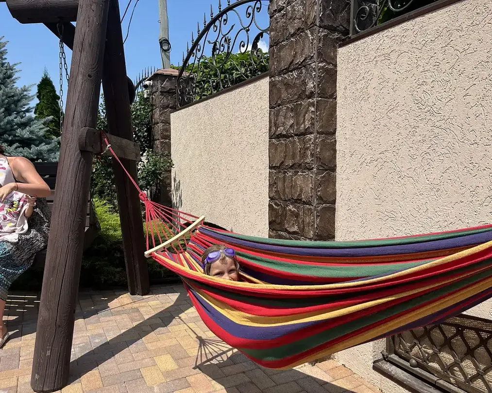 Прохладу дает хорошая вентиляция и сплит-система. Атмосферное и уютное пространство для комфортного отдыха.