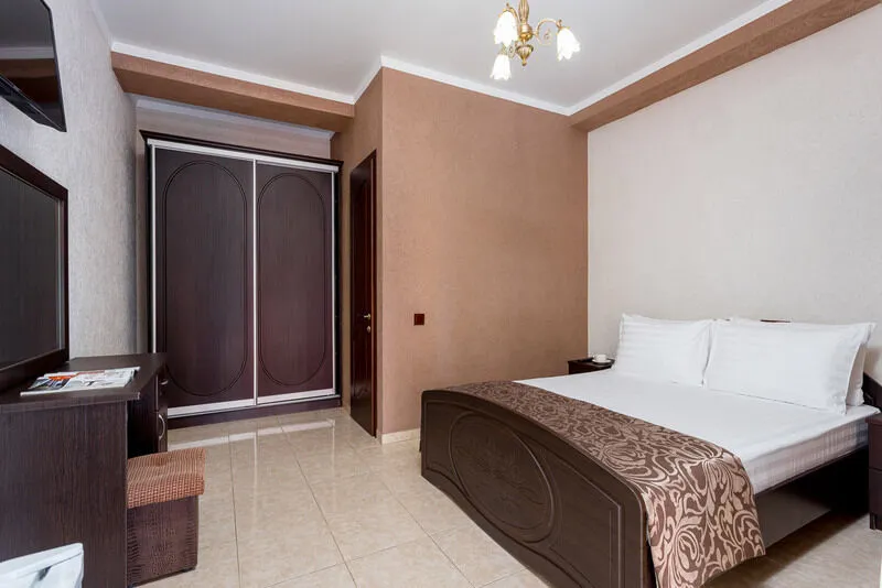 Самолетом до аэропорта г. Анапа, далее на маршрутном такси №113 до остановки «Аквапарк», далее на маршрутном такси №114 до остановки «Бульвар Шардоне», далее пройти пешком 760 м до отеля.
