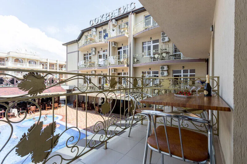 июнь 2021 г.Отдыхали с семьей в данном отеле в июне 2021гОтдыхали с семьей в данном отеле в июне 2021г , занимали номера 205 и 413. Очень все понравилось! Есть трансфер от аэропорта до гостиницы и обратно, не нужно искать место отдыха, как это делают остальные туристы. Свой пляж, на котором всегда есть свободные лежаки, развлечения для детей, удобства в виде душа и туалета. Номера небольшие, но комфортные. Очень хорошая шумоизоляция-соседей не было слышно вообще. Хороший напор воды в душе. Выдают халаты и полотенца, в том числе пляжные. Питание в столовой отличное-есть с чем сравнить-посещали разные столовые и кофе в Витязево, но поняли, что лучше столовой Сократис места нет. Персонал приятный, дружелюбный, очень внимательный к детям. На территории гостиницы есть бассейн, детская площадка, имеются прогулочные коляски и велосипеды. По вечерам анимация, чередуется детская и взрослая по дням недели, скучно не бывает никогда. Вечером работает кафе, где можно заказать блюда на мангале. В общем, нам все очень понравилось, в следующем году планируем вернуться туда же, только уже не на 14 дней, а на месяц))