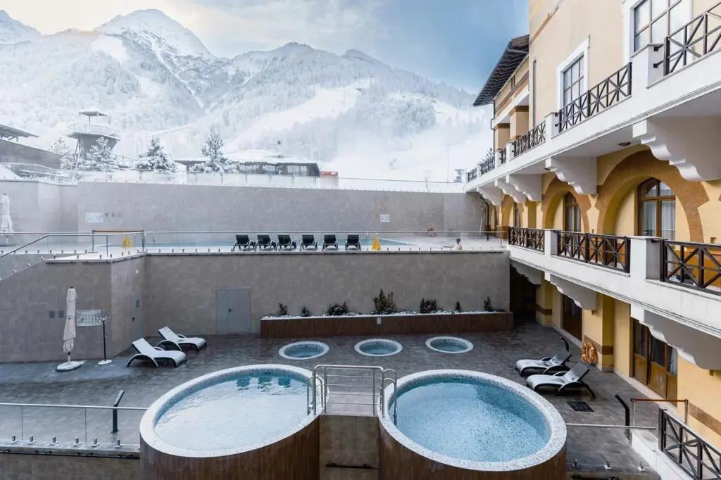 Спа-центр отеля представлен термальной зоной, тренажерным залом и массажным кабинетом. Дополнительные сервисы включают консьерж-службу, комнату для хранения горнолыжного оборудования, трансфер к канатной дороге, конференц-залы и комнаты для переговоров.