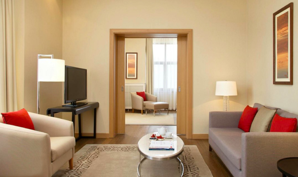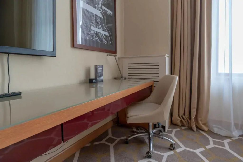 Вместимость: театр (200 человек), класс (100 человек), буква «П» (30 человек), один стол (30 человек), банкет (130 человек) - Presedential Suite Lounge: 60 кв. м
