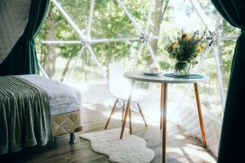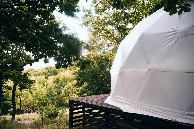 Внутри сферы есть все необходимое: кухня, собственная ванная комната, кондиционер, беседка, мангал.