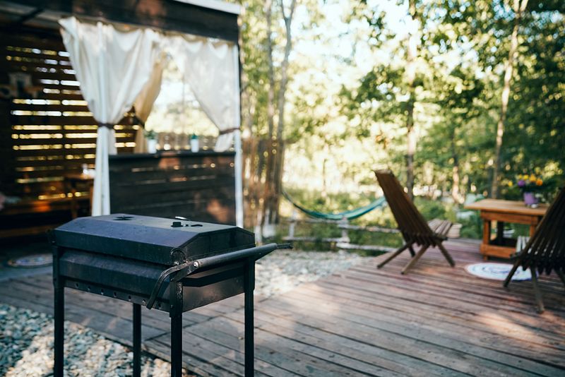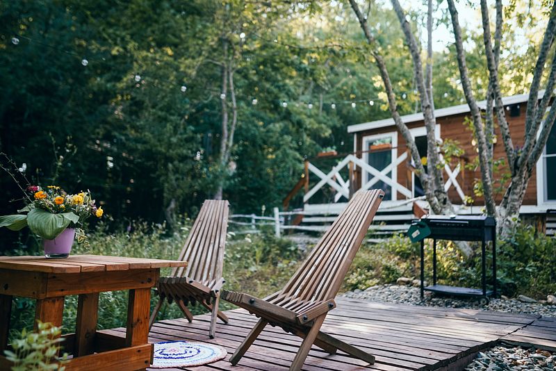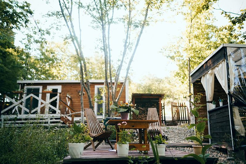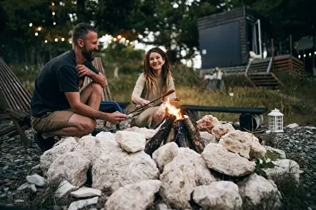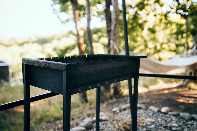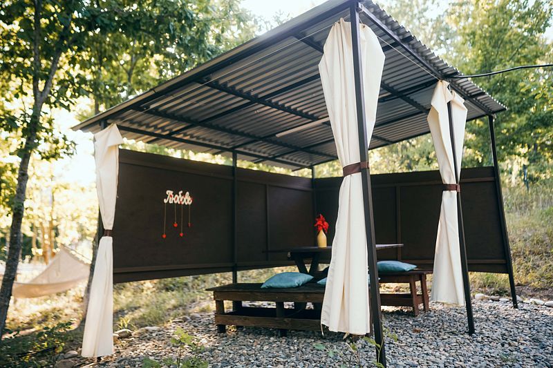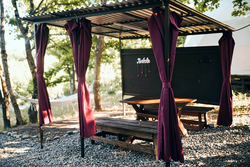 На территории глэмпинга, помимо личных мангальных зон, есть большое костровое место для уютных вечеров.