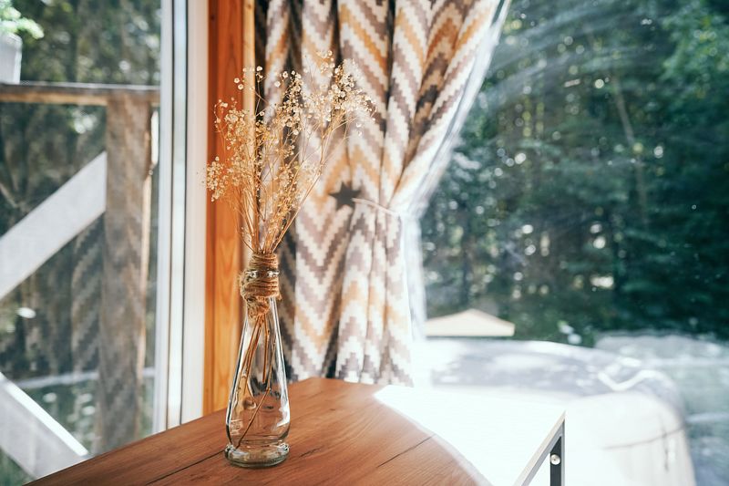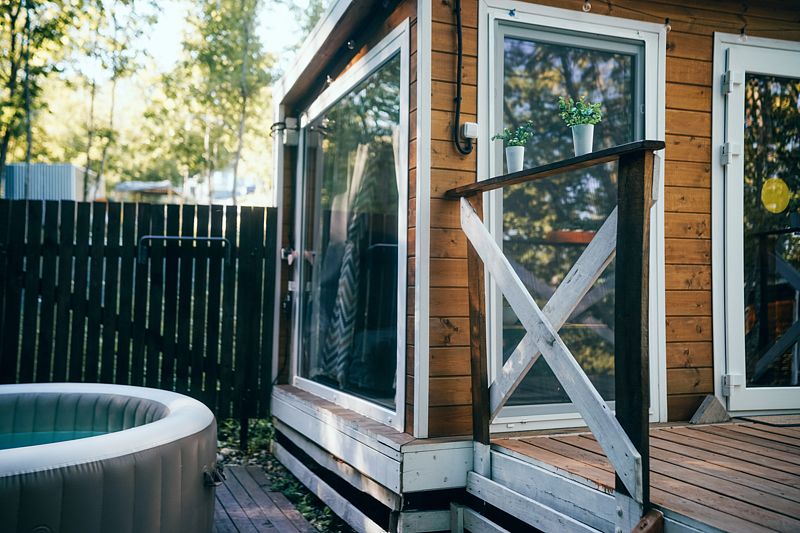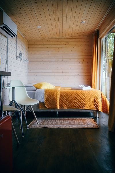 К услугам гостей - уютный в Скандинавском стиле домик с панорамным окном. У домика есть своя небольшая терраса, на которой удобно отдыхать, заниматься йогой или читать книги. Дополнительно предоставляем бассейн-джакузи с панорамным видом на террасе домика.