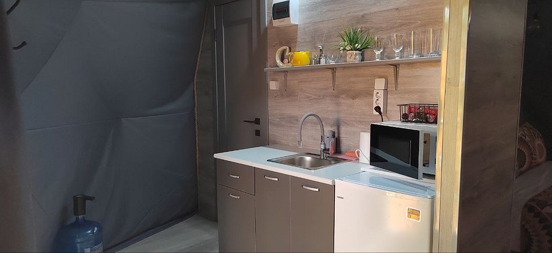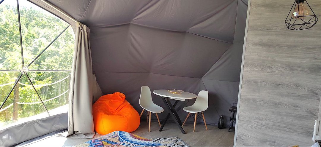 Семейный отдыхДостоинстваМы провели замечательные выходные в уютной сфере. Внутри все продумано до мелочей: от гигиенических принадлежностей до халатов. Внутри сферы достаточно просторно, каждый уголок продуман и обустроен с заботой. Здесь есть все необходимое для комфортного проживания - от кухонной утвари до чистой питьевой воды. От души рекомендуем это место для отдыха всей семьей - нам, взрослым и ребенку, здесь было очень комфортно. Благодарим владельцев за их труд и заботу.