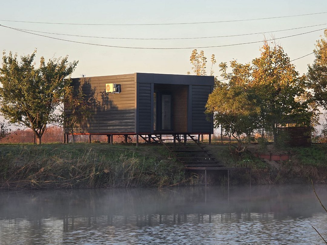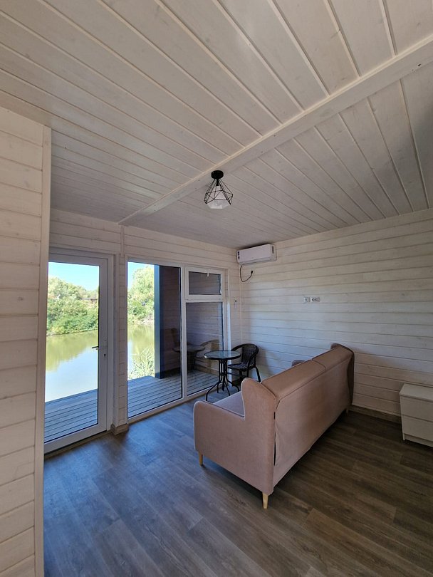 Каждый дом оснащен индивидуальным мостиком для рыбной ловли, террасой с кофейным столиком и мангальной зоной. В доме могут комфортно разместиться 2 взрослых и 2 детей или 3 взрослых.