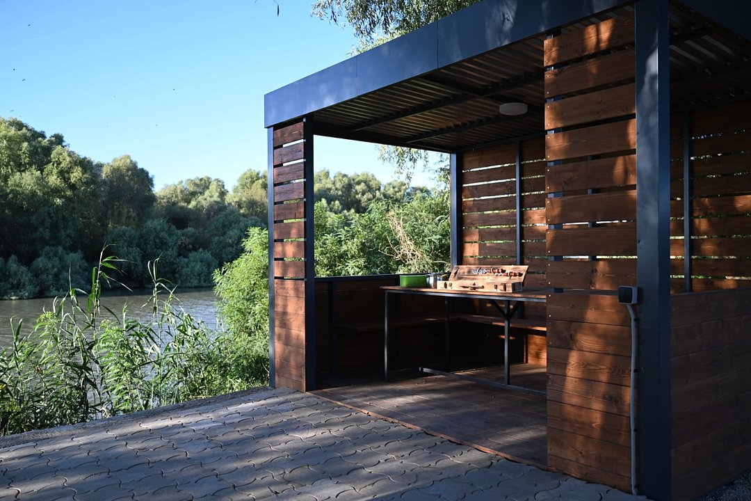 Гостей ждут пять уютных беседок, каждая из которых оснащена всем необходимым — от освещения до розеток для зарядки гаджетов и краном с чистой питьевой водой — и идеально подходит для дружеских встреч до десяти человек на лоне природы.