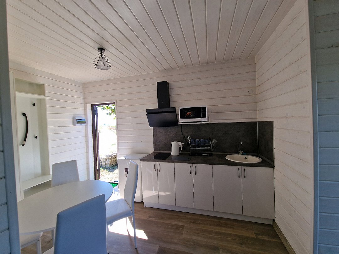 Дом класса полулюкс общей площадью 40 м². Для отдыхающих созданы максимально комфортные условия: у вас будет своя собственная кухня, где вы сможете приготовить свежевыловленную рыбу или разогреть в микроволновой печи принесенную еду.