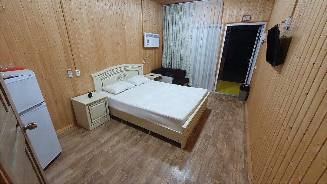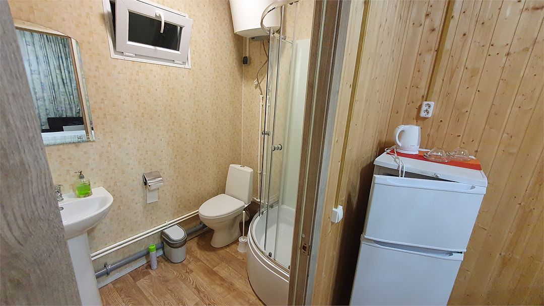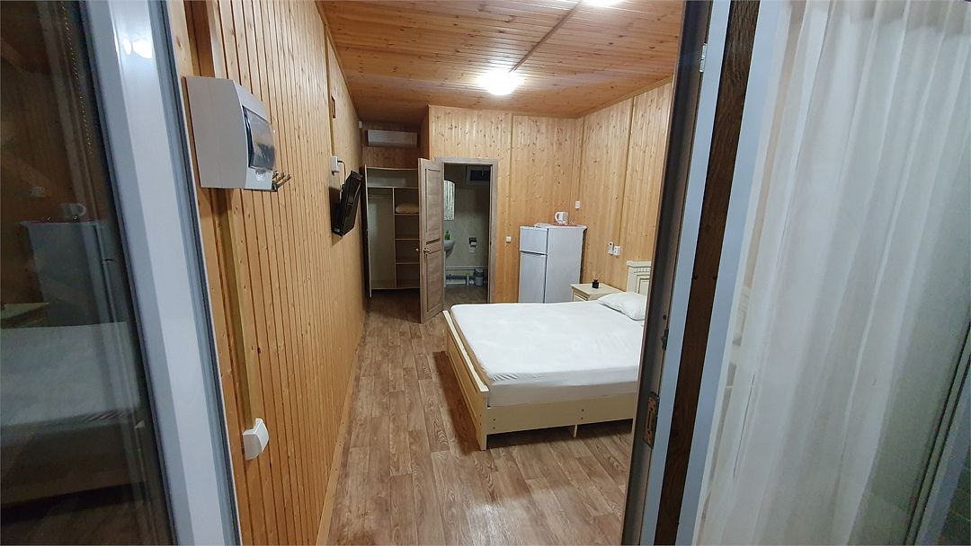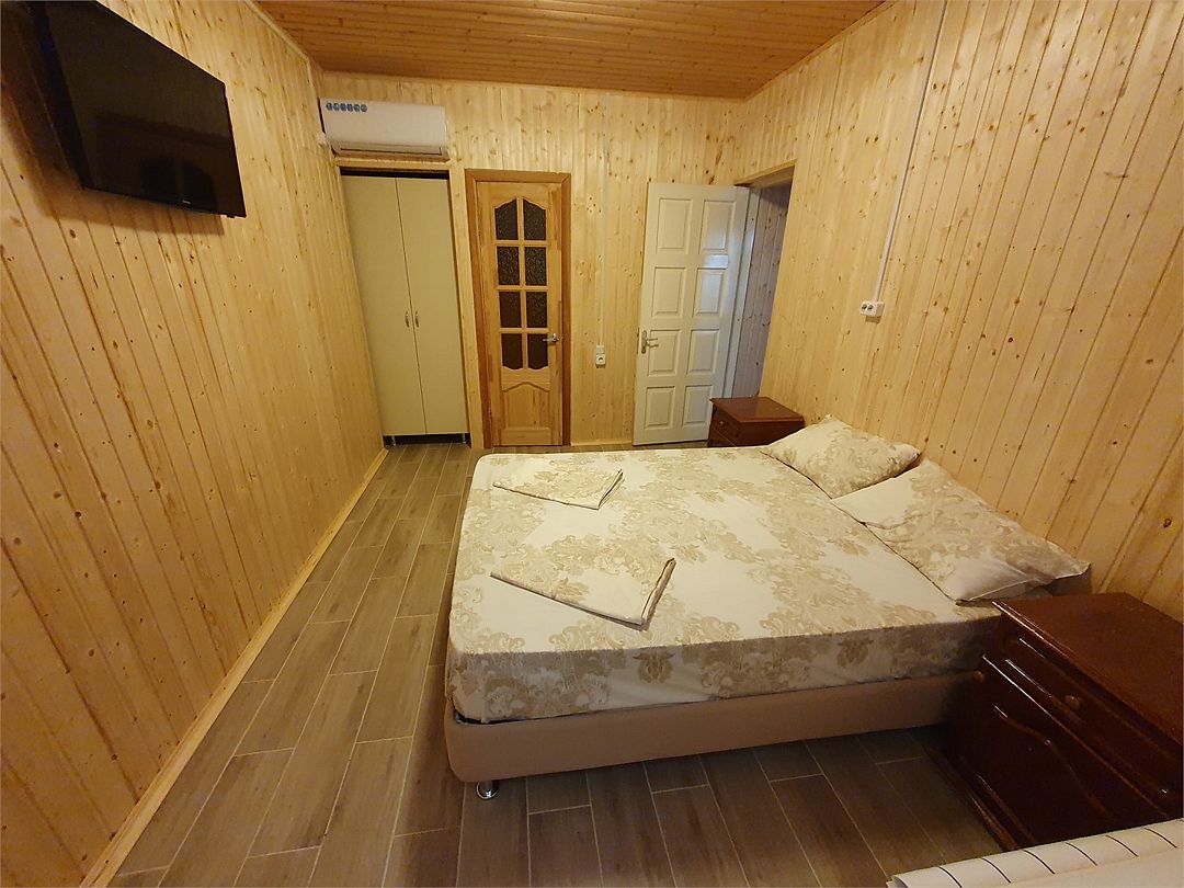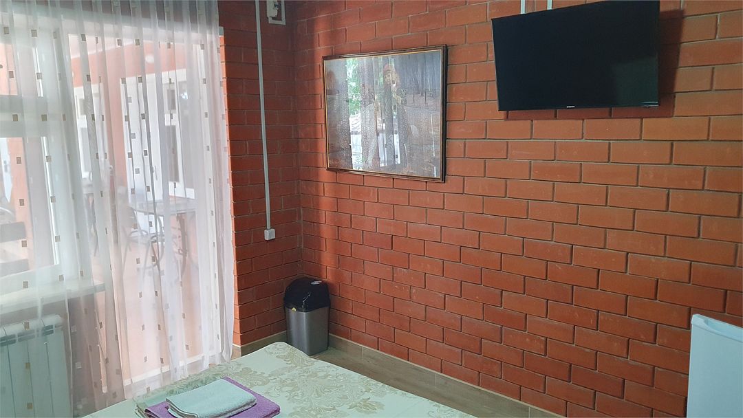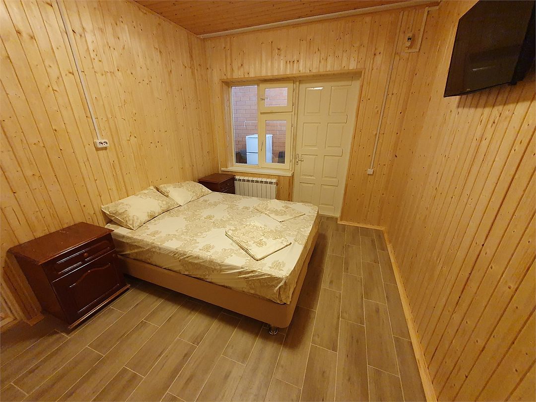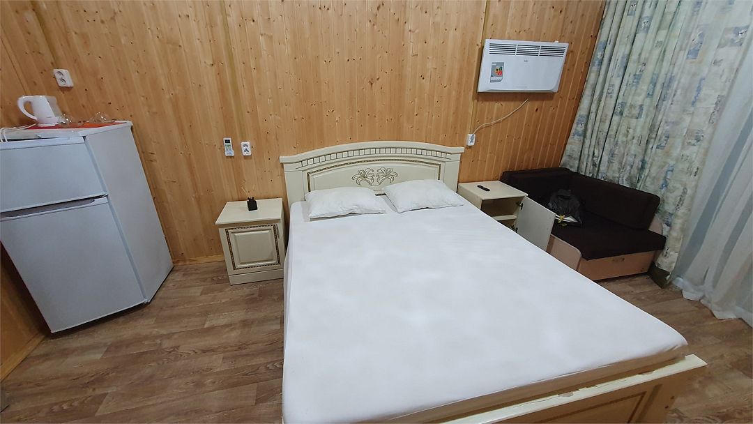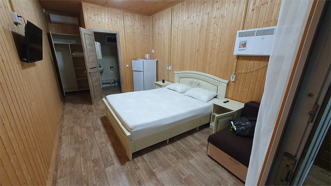 В номере: холодильник, телевизор, кондиционер, электрочайник, совмещенные душ и туалет, двуспальная кровать, прикроватные тумбы, стол и стулья. При заселении удерживается залог размере 5000 рублей (возвратные деньги). Допускается проживание с собачками от 5 до 8 кг., по предварительному согласованию с администрацией. Оплата за питомца составляет 1000 рублей сутки. Залоговая сумма при проживании с животным увеличивается до 10000 рублей. В случае приезда с питомцем без предварительного согласования и уведомления, администрация имеет право отказать в заселении.Услуги и удобства