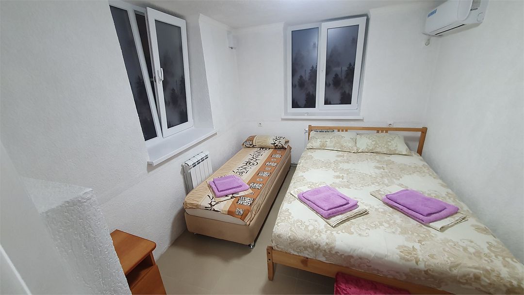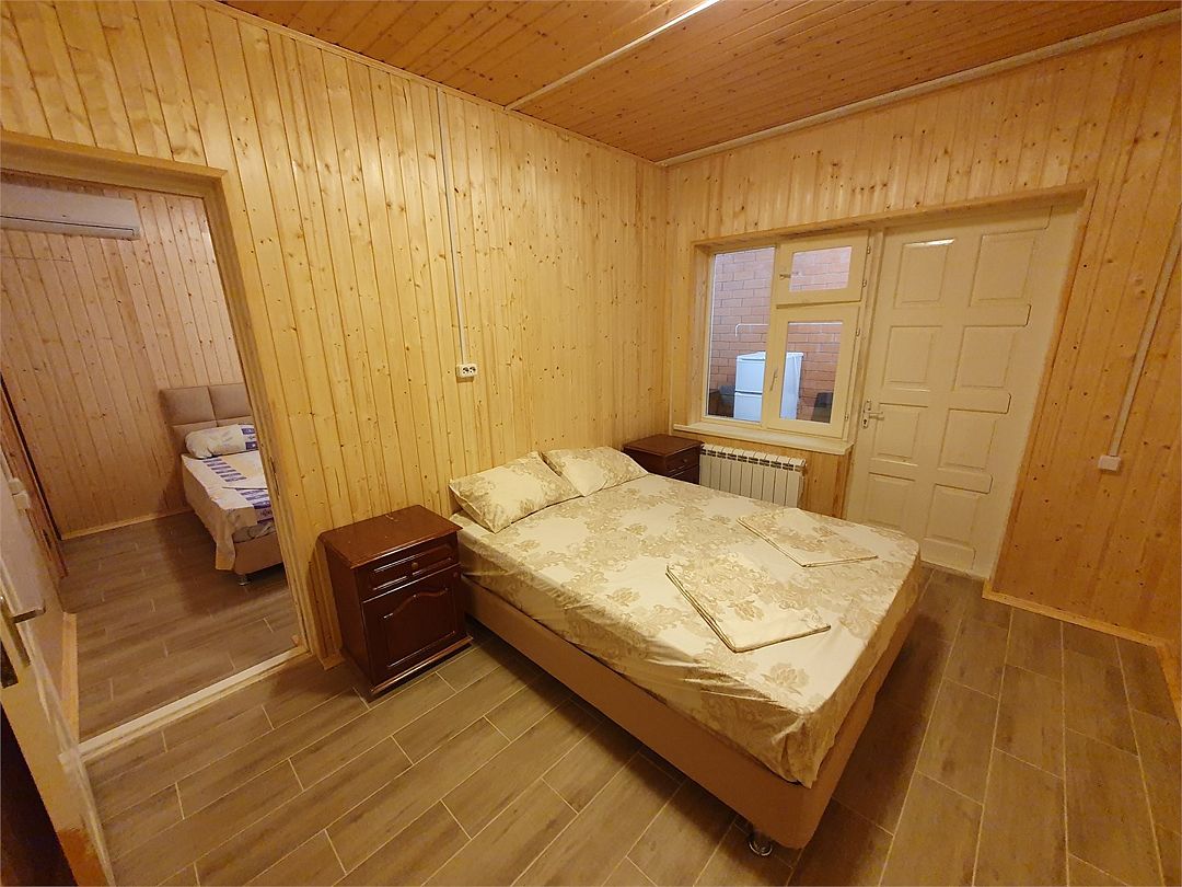 Номер состоит из двух комнат. В одной из комнат расположена кухня с холодильником, электроплитой, микроволновкой, кухонная утварь и посуда. Во второй комнате односпальная кровать и двуспальная кровать. Туалет и душ в номере. Кондиционеры в каждой комнате. Шкаф, стол, стулья. При заселении удерживается залог размере 5000 рублей (возвратные деньги). Допускается проживание с собачками от 5 до 8 кг., по предварительному согласованию с администрацией. Оплата за питомца составляет 1000 рублей сутки. Залоговая сумма при проживании с животным увеличивается до 10000 рублей. В случае приезда с питомцем без предварительного согласования и уведомления, администрация имеет право отказать в заселении. Просим вас внимательно отнестись к этому вопросу.Услуги и удобства
