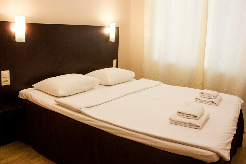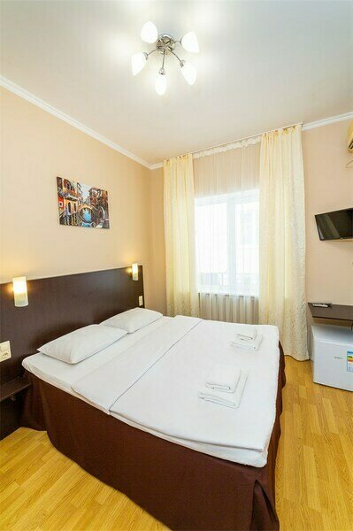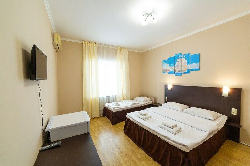Трехэтажный корпус отеля занимает небольшую уютную территорию в зеленом и тихом квартале города. К услугам гостей 14 комфортабельных номеров. В каждом номере есть кондиционер, душ, телевизор и небольшой холодильник.