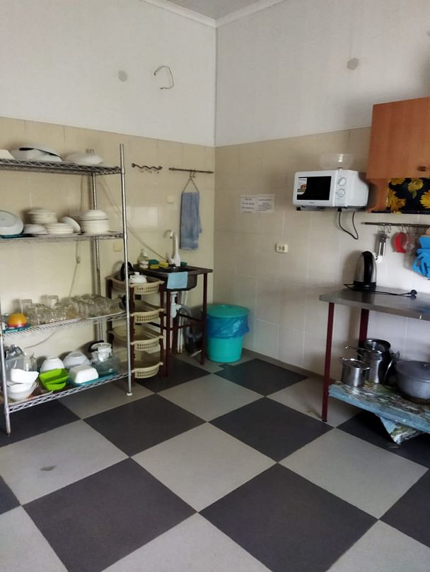 Кухня для самостоятельного приготовления пищи со всем необходимым оборудованием и посудой.