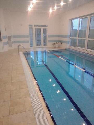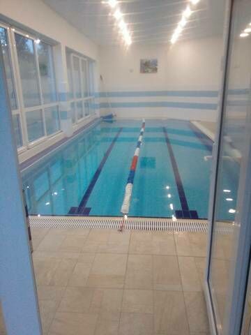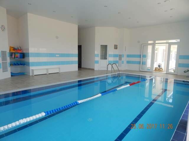 Чистый, большой, крытый, с подогревом. Вода из артезианской скважины. Ежедневно контроль СЭС. Открыт в 2017 году.