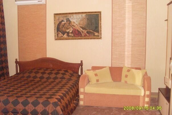 2-х спальная кровать, два 2-х местных дивана, столик с пуфиками, совмешенный душ с туалетом.В гостиничном номере
