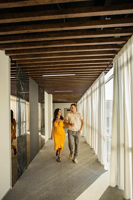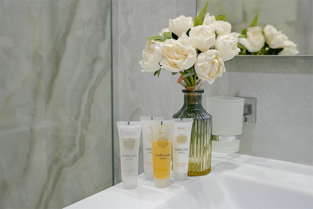 Wi-Fi, холодильник, фен, электронные замки, кофемашина, микроволновая печь, утюг, душевая кабина, банные принадлежности, халаты, тапочки, косметические средства, кровать «Queen size», кухня, сейф, обеденная зона, вид на город, сплит-система, панорамные окна, телевизор со Smart TVВ гостиничном номере