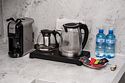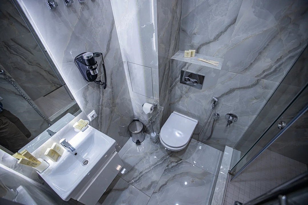 холодильник, светильник, фен, электронные замки, плита для приготовления пищи, кофемашина, микроволновая печь, утюг, водонагреватель, халаты, банные полотенца, тапочки, гигиенические средства, унитаз, раковина, душ, кулер на этаже, туалетные средства, туалет, сплит-система, туалетные принадлежности премиум-класса, мылоВ гостиничном номере